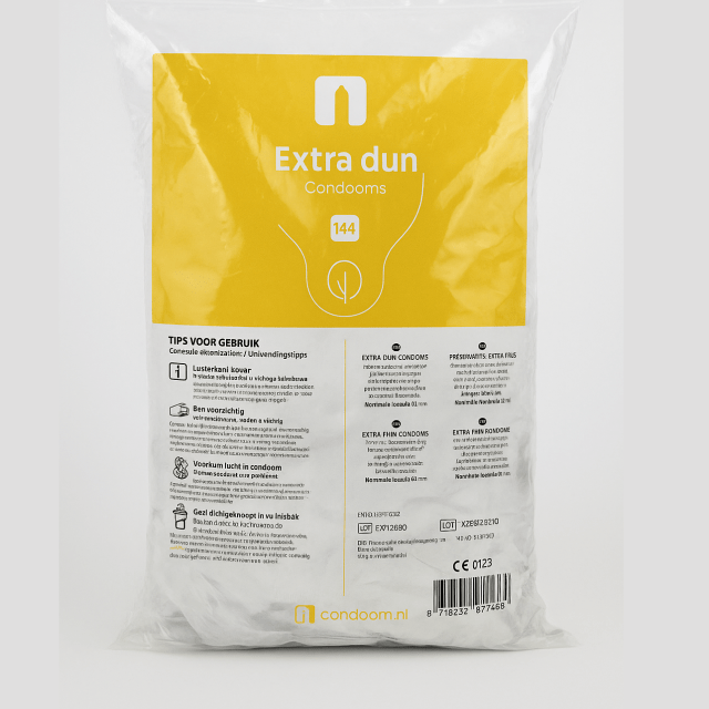 Condooms.be heeft sinds kort een eigen lijn condooms. Deze worden in een gerenommeerde fabriek gemaakt, gebruikmakend van de beste latex. De condooms worden uitvoerig getest voordat ze, voorzien van een CE 0123-certificering, worden verpakt en ons magazijn bereiken. Ze beschermen je net zo goed tegen soa’s en zwangerschap als de bekende merken, maar zijn stukken voordeliger. Het model Extra dun is er voor mannen die het natuurlijke gevoel zoveel mogelijk willen nabootsen. Deze condooms maken veilig vrijen net ietsje lekkerder. Bestel ze en ervaar zelf het verschil.