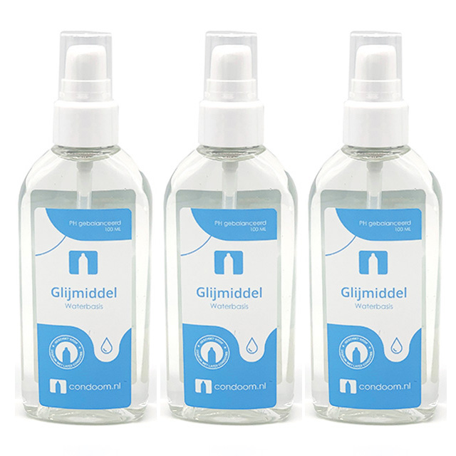 Kies voor een flacon van 100 ml of 500 ml aan neutraal glijmiddel op waterbasis. Kies voor waterbasis in plaats van oliebasis, zodat het glijmiddel na gebruik makkelijk weg te vegen is. Deze lichte formule heeft geen kleur- of geurstoffen en is pH-vriendelijk.