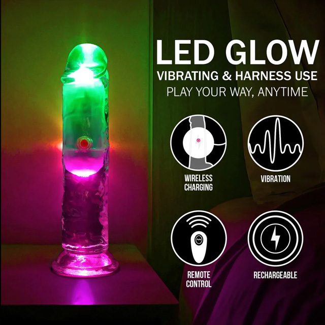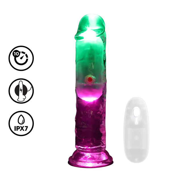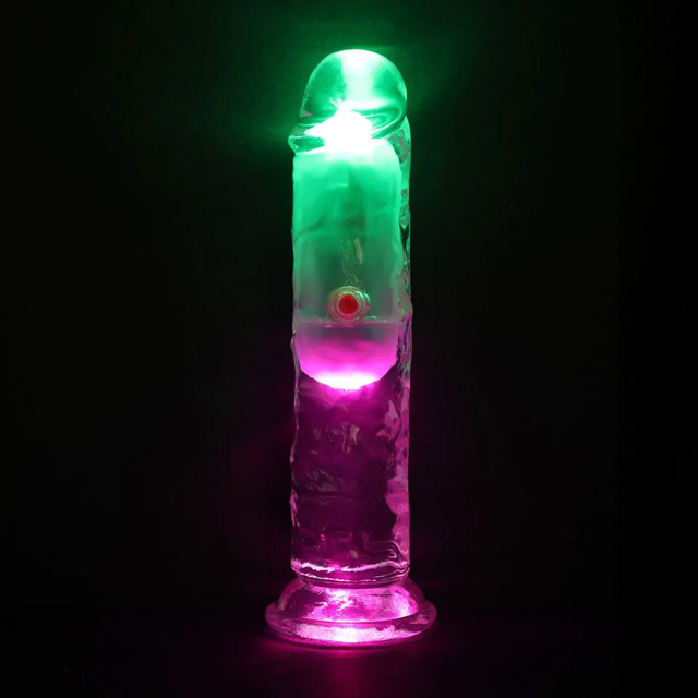 • Transparantie vibrerende dildo met geïntegreerde LED-verlichting